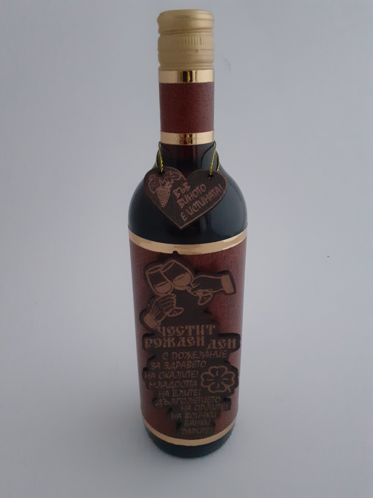 Бутилка вино с кожа „Честит рожден ден“