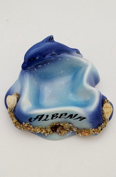 Ръчно изработен керамичен пепелник с декорация делфин и залепен пясък